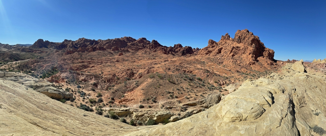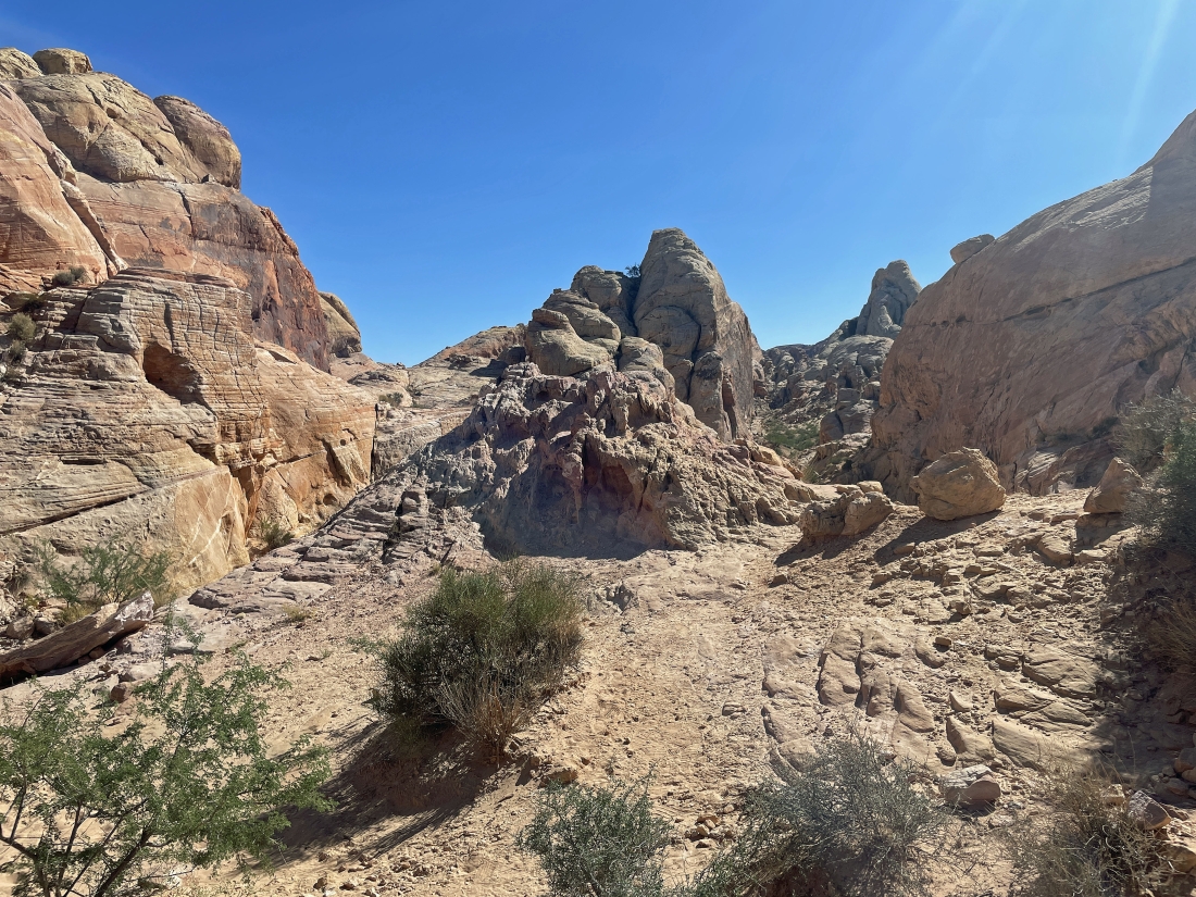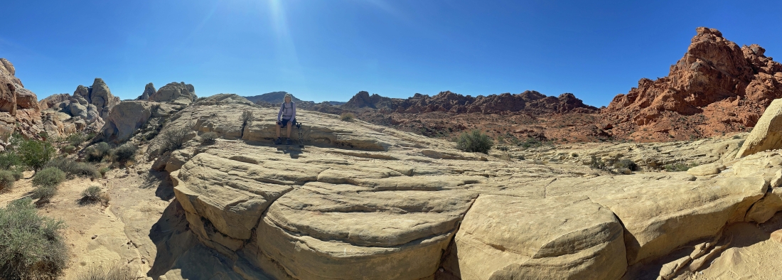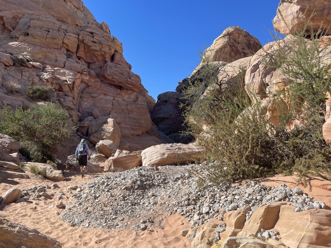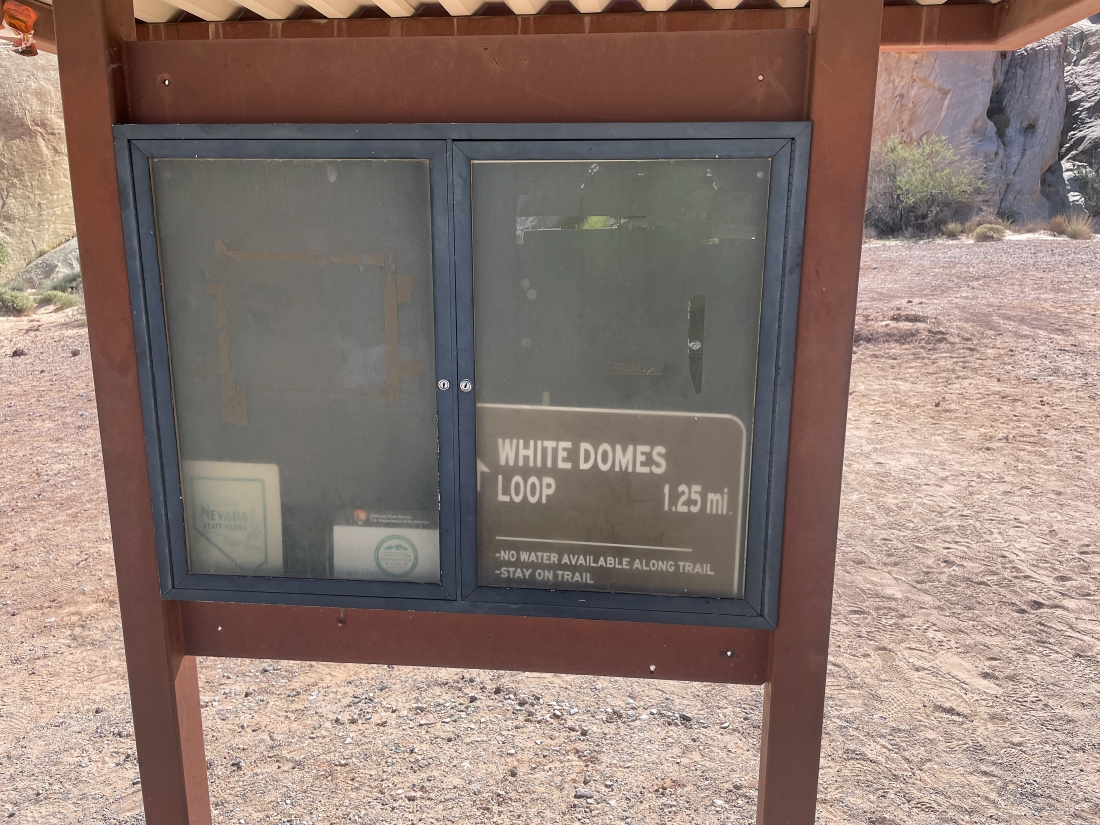 In the Valley of Fire State Park we drove to the end of the White Domes Road and parked at the White Domes Loop trailhead.