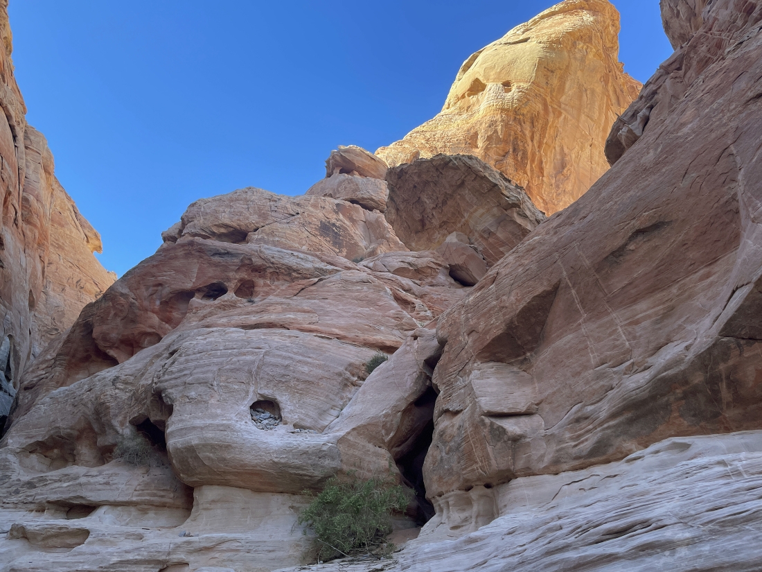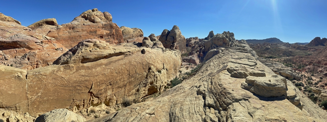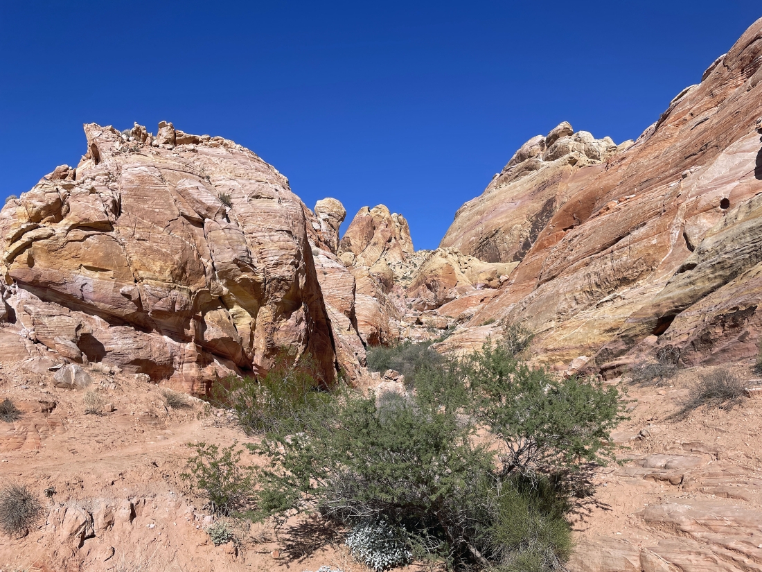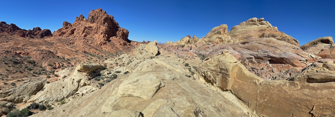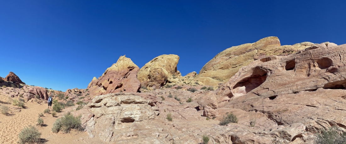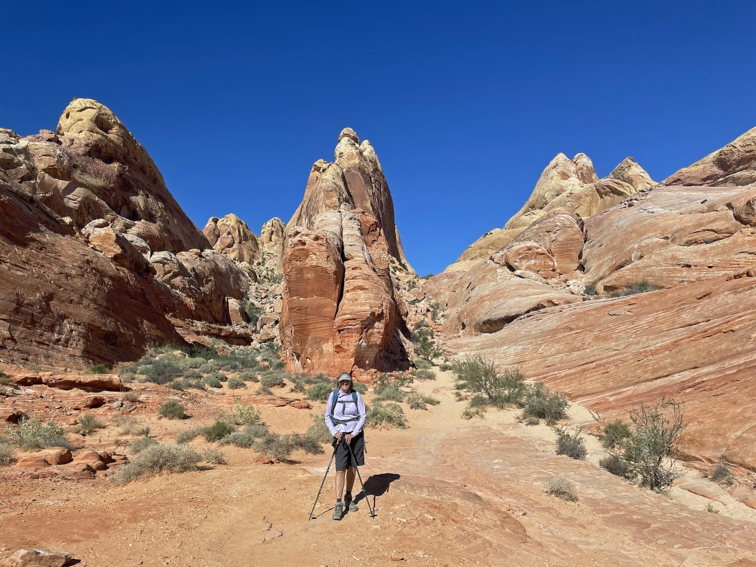 In the Valley of Fire State Park we drove to the end of the White Domes Road and parked at the White Domes Loop trailhead.