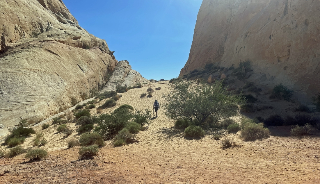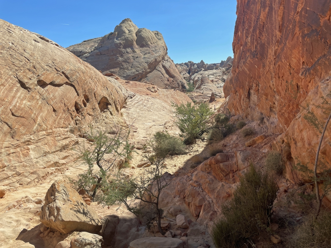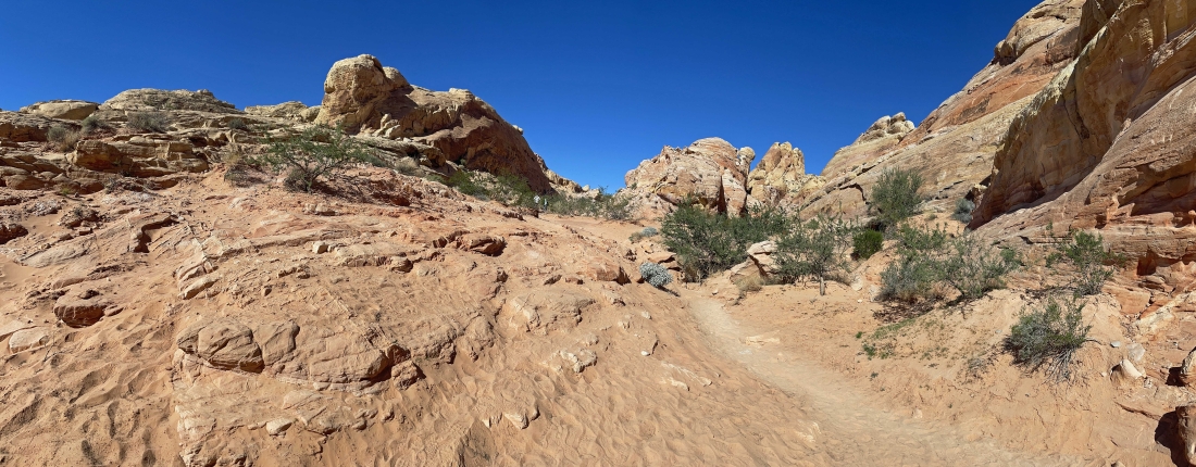 Out of the slot canyon... leaving the Seven Wonders Trail and back on the White Domes Loop Trail... now heading north.