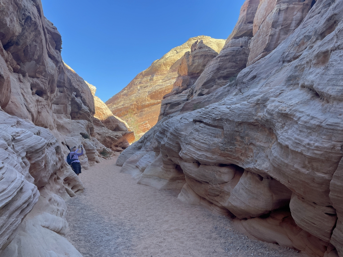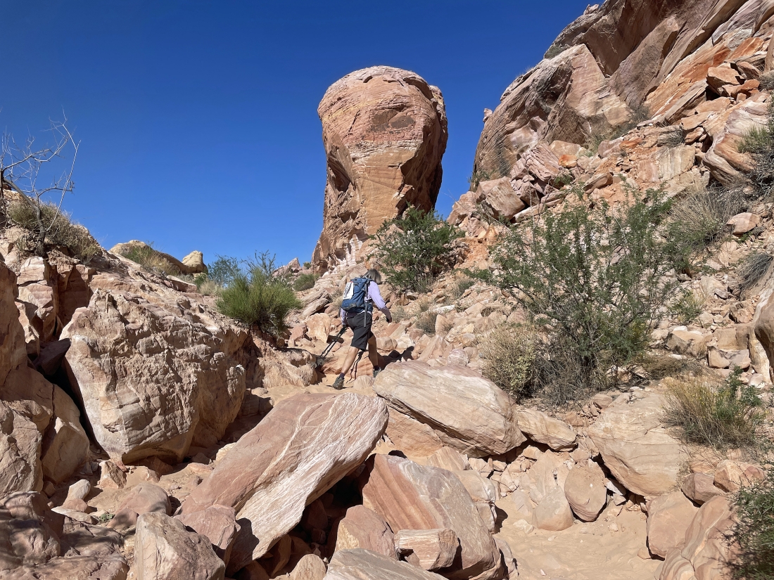 Continuing to hike north on the White Domes Loop Trail... is that an elephant watching Denali Girl come up?