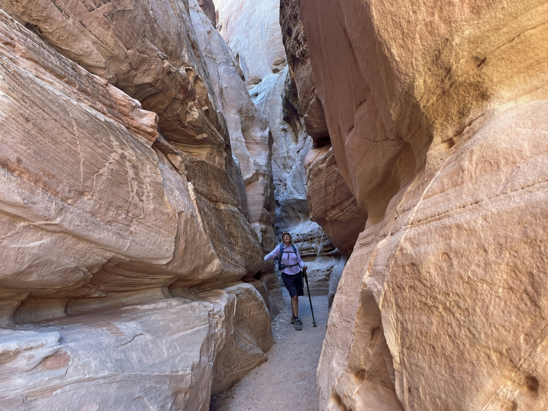 Looking back In the slot canyon that is shared with the Seven Wonders Trail.