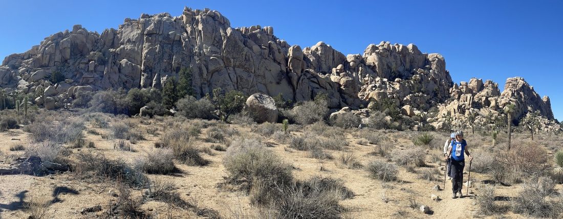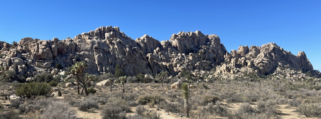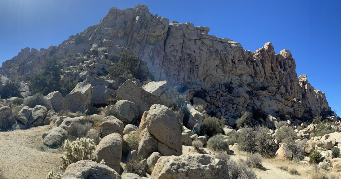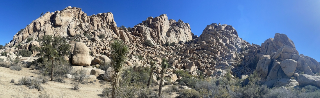 From the west entrance to Joshua Tree National Park we drove Park Boulevard a quarter mile past the main parking lot for Hemingway and parked in a paved pull-out... here looking at the east side of the huge Hemingway buttress.