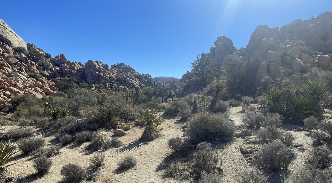 Looking back down Hidden Valley... and we can see Ryan Mountain on the horizon in the middle of the photo.