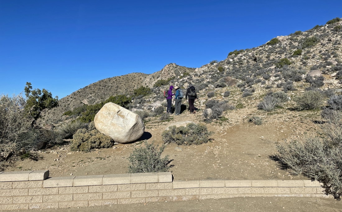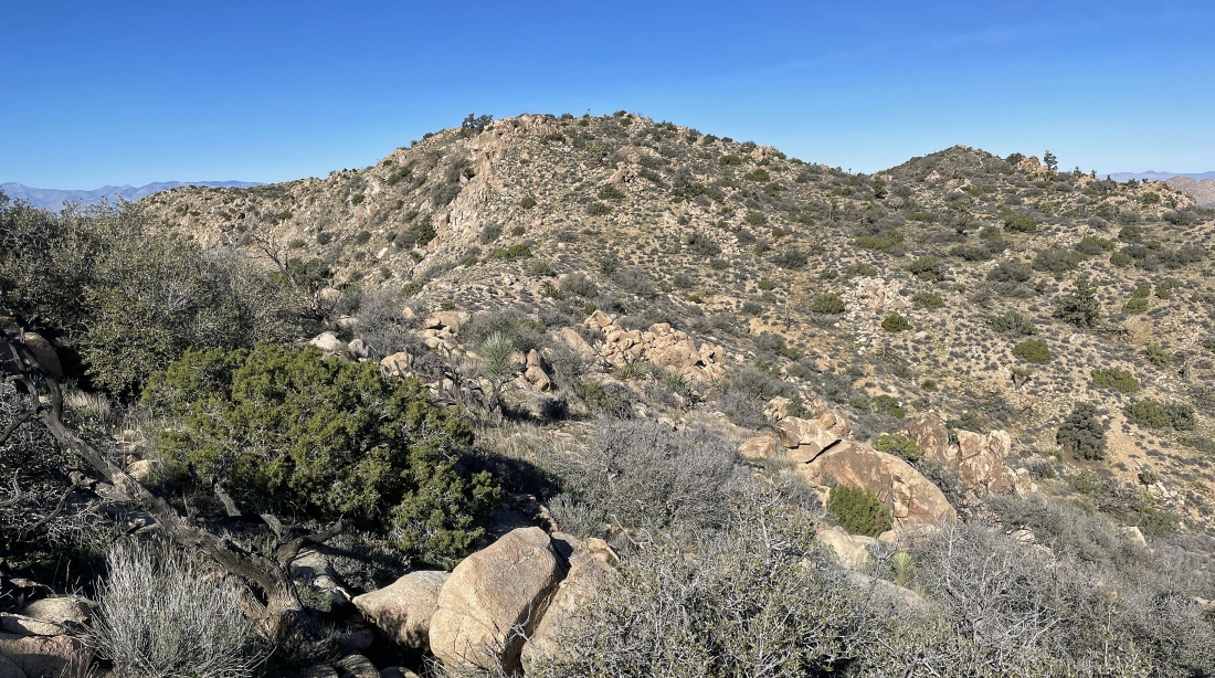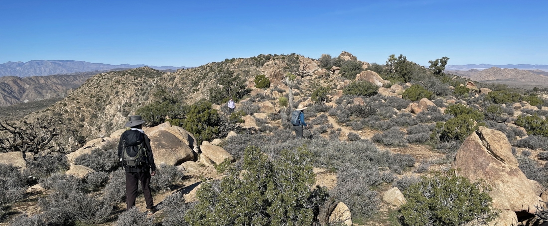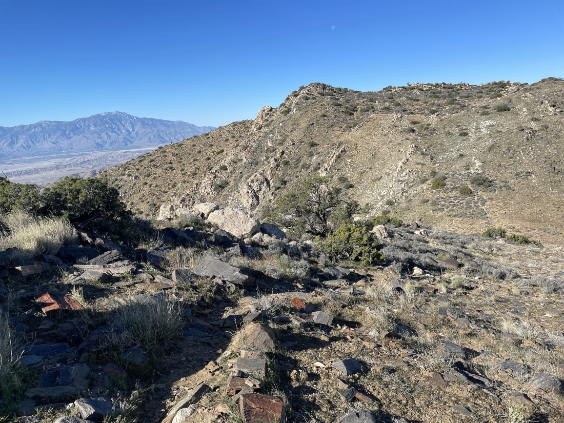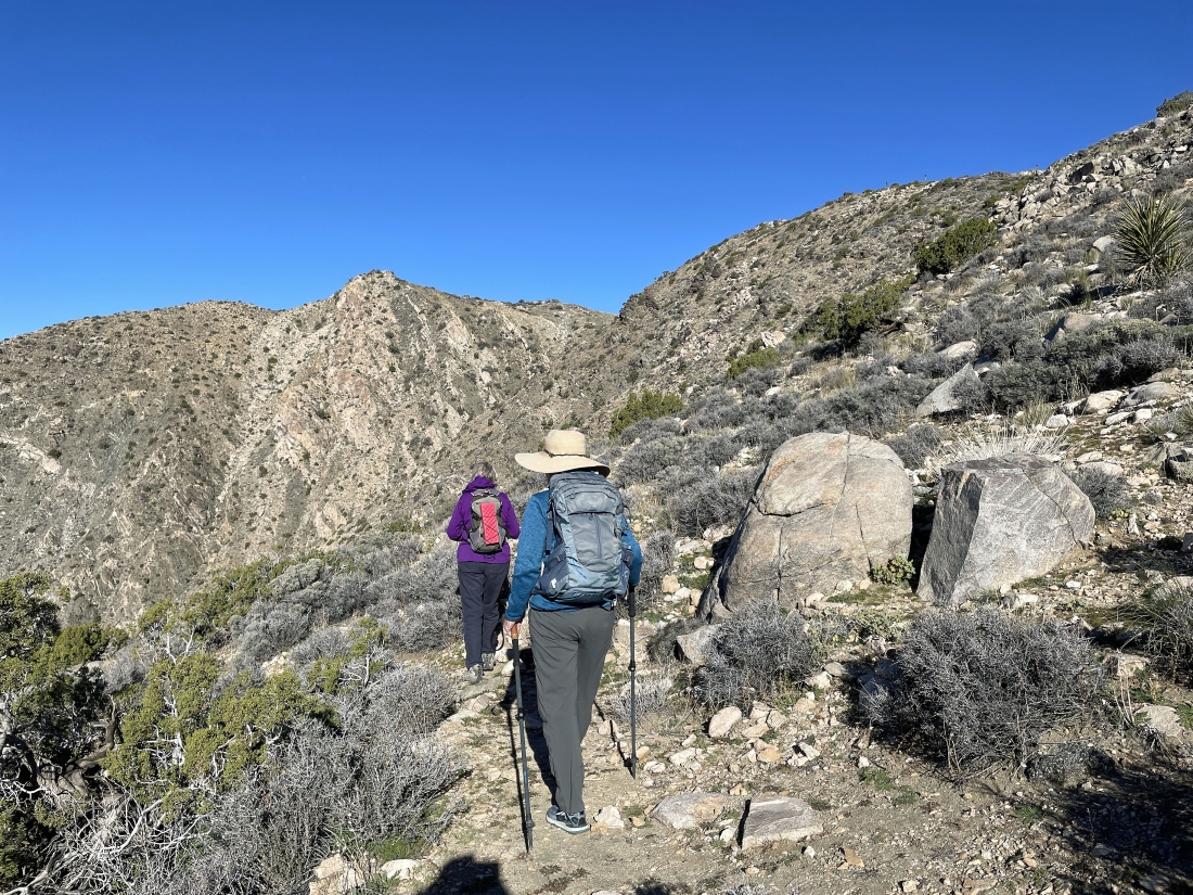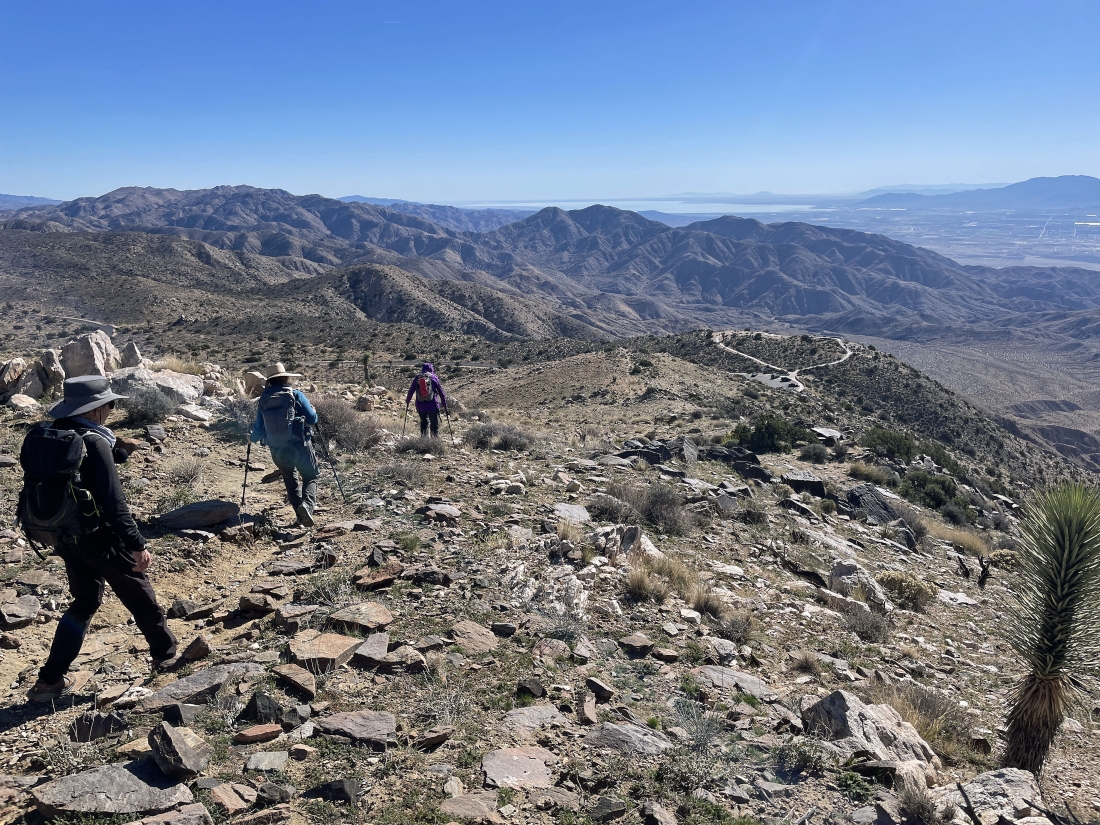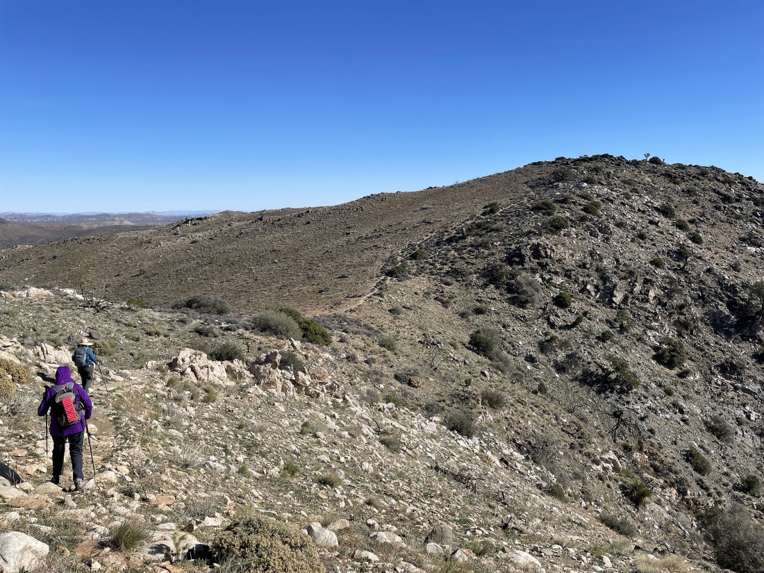Getting ready to give up a little elevation before heading up to Point 5558... with part of the San Jacinto Mountains on the far-left horizon.