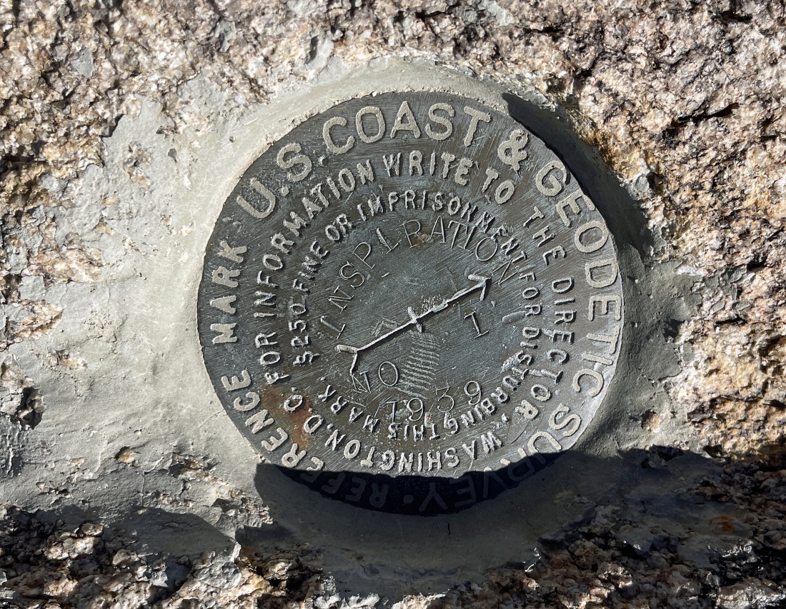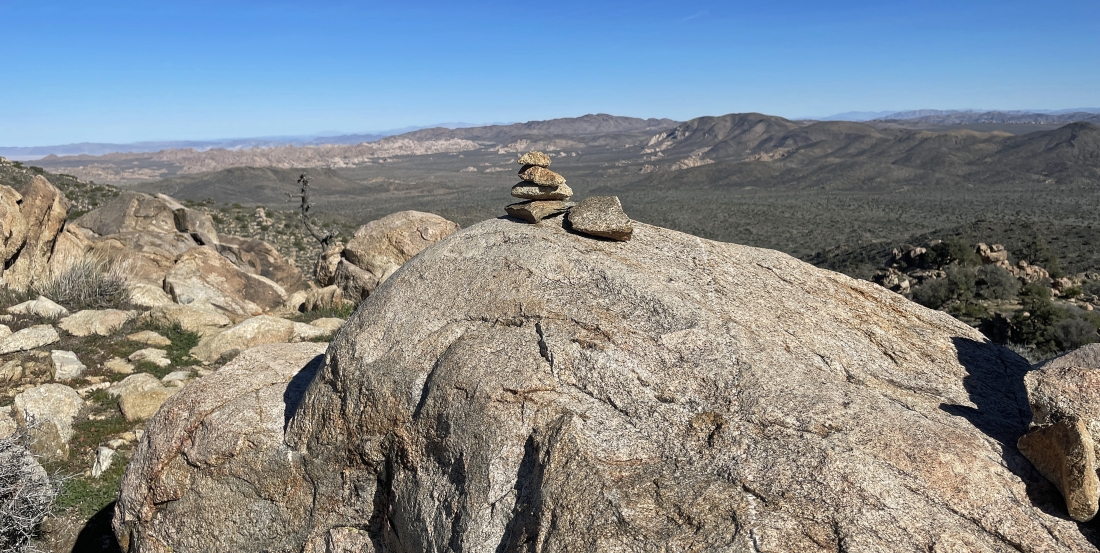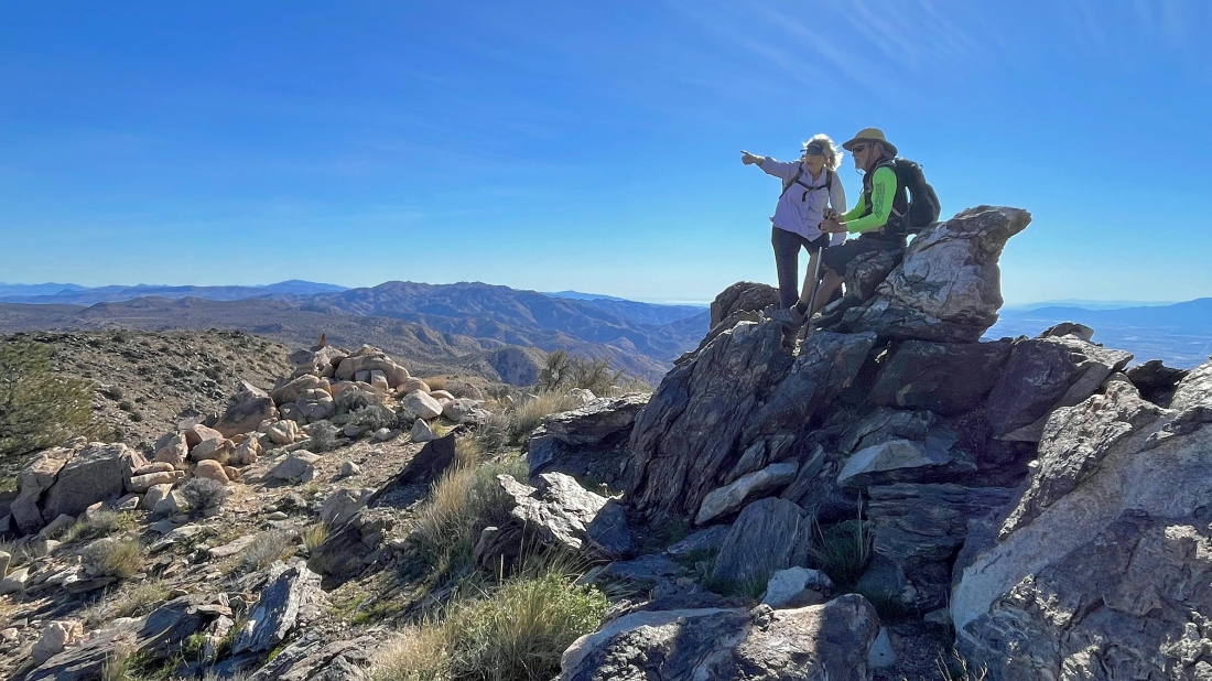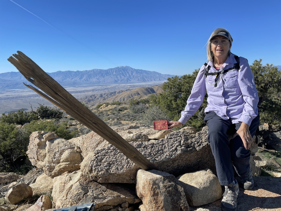 After hiking one mile Denali Girl is sitting on the summit of Inspiration Peak... with the San Jacinto Mountains on the horizon.