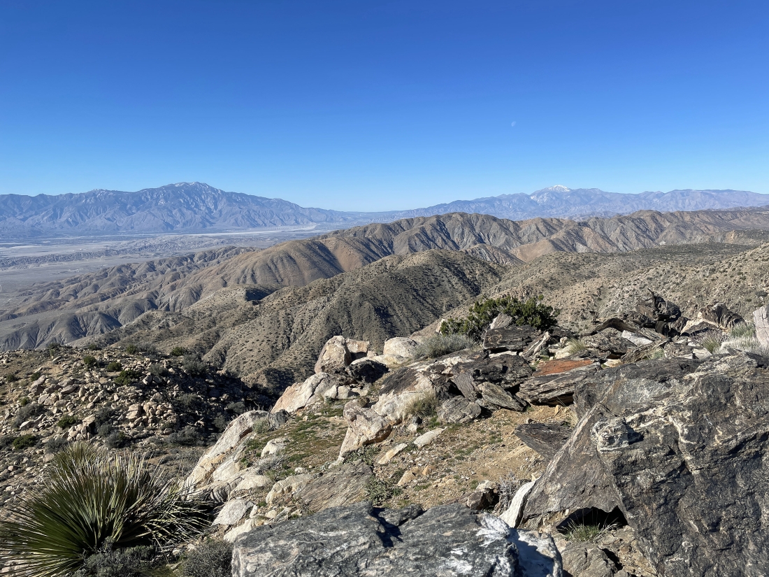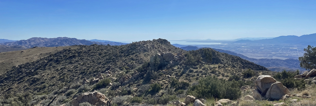 Tracing our steps back to Point 5558... with more of the Little San Bernardino Mountains on the left... and looking down Coachella Valley on the right down to the Salton Sea... with part of the Santa Rosa Mountains on the far-right horizon.