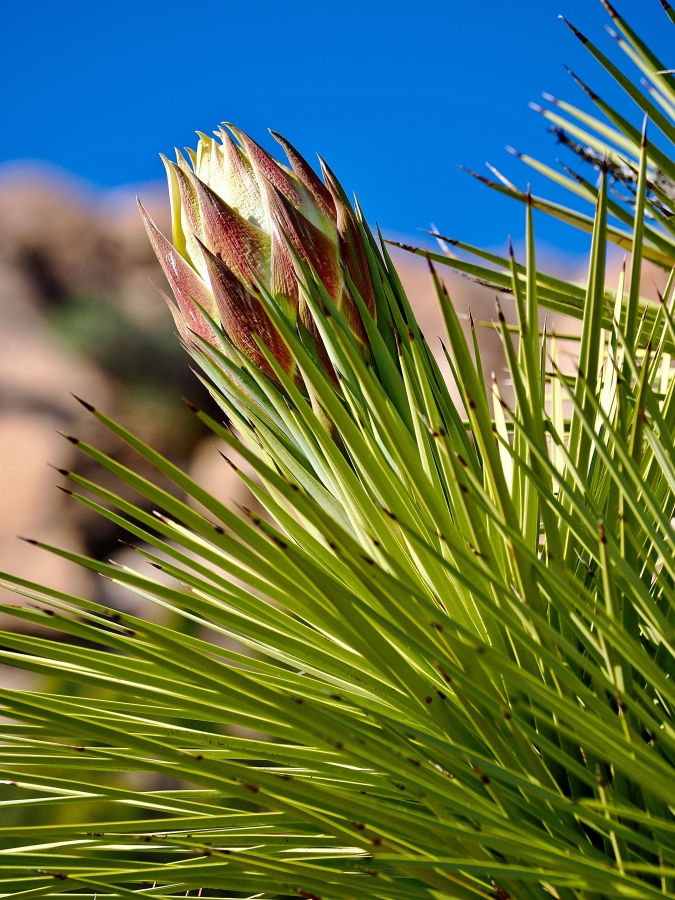 photoman took this photo of a bloom on a joshua tree... we haven't seen many blooms since arriving here in late October because the blooming season for joshua trees runs from late winter to early spring... this bloom is definitely a pioneer!
