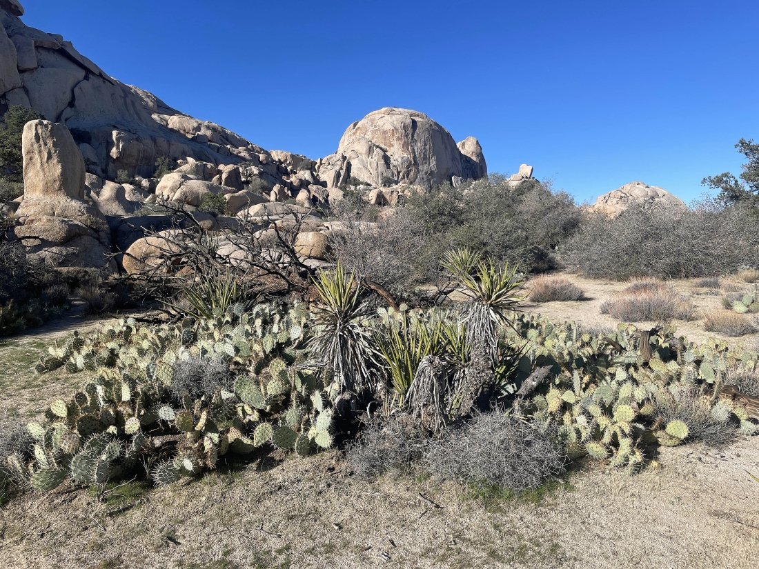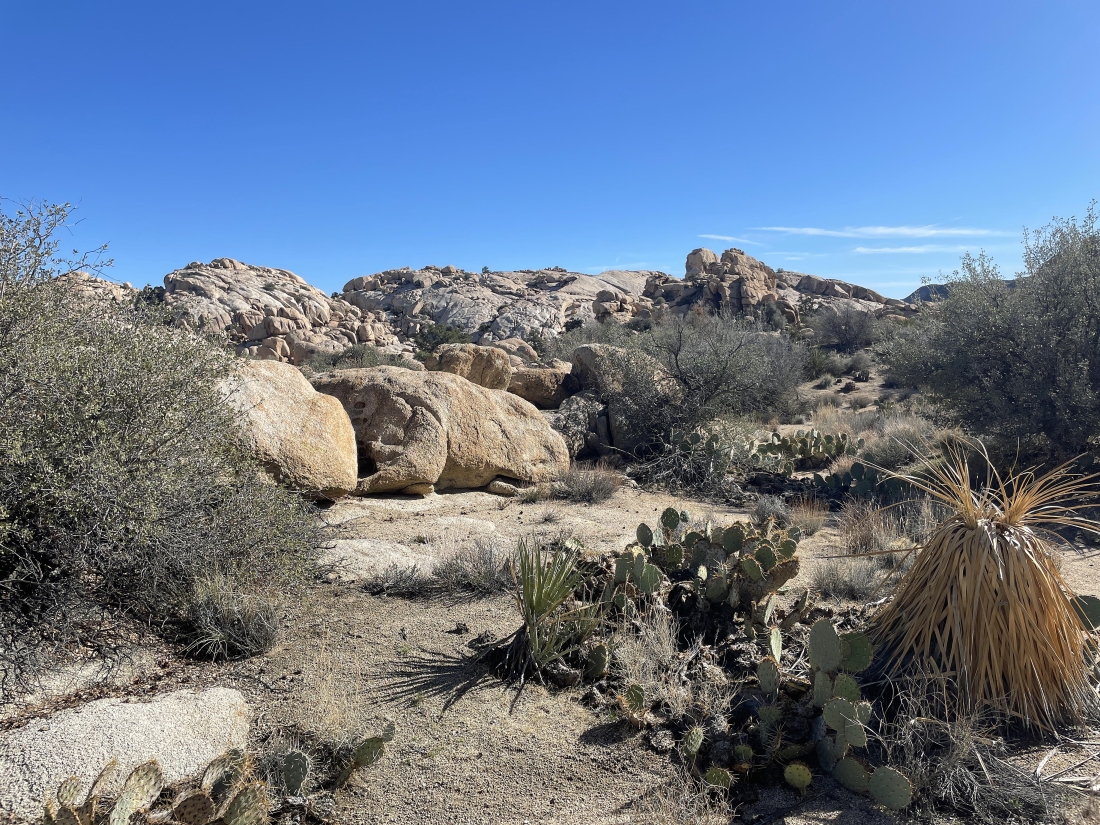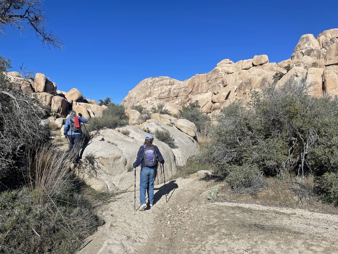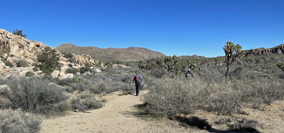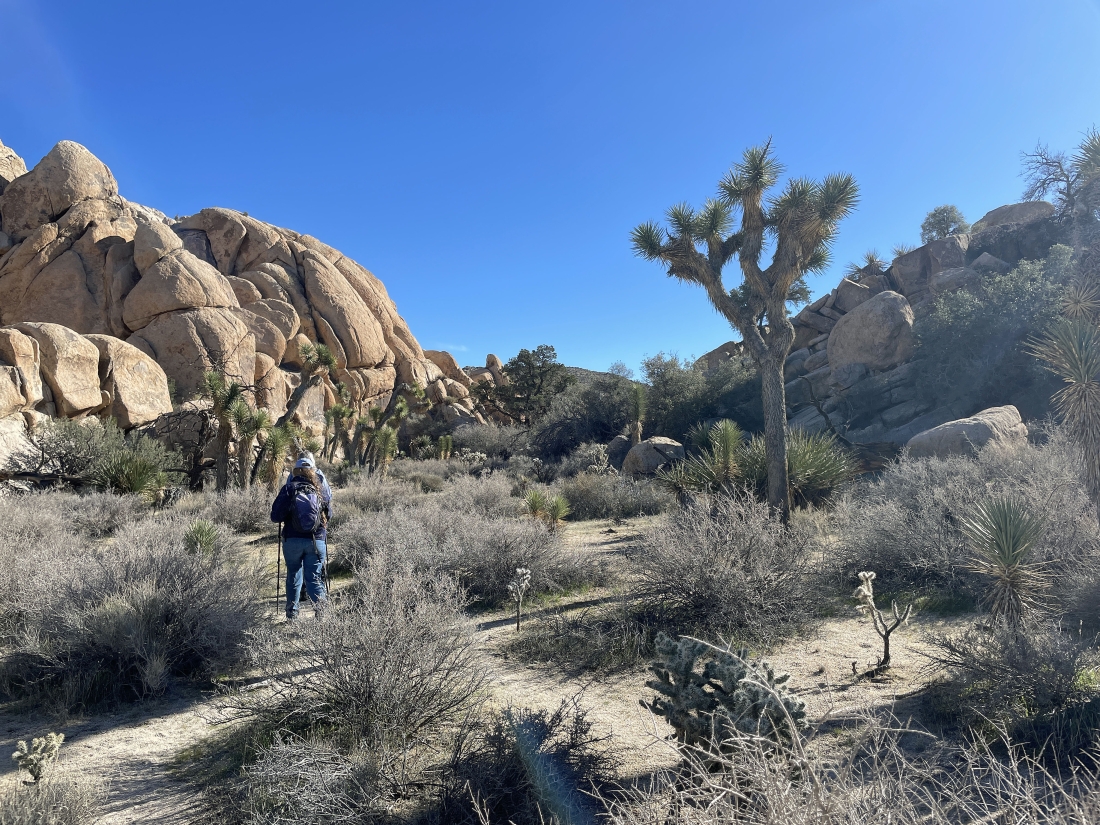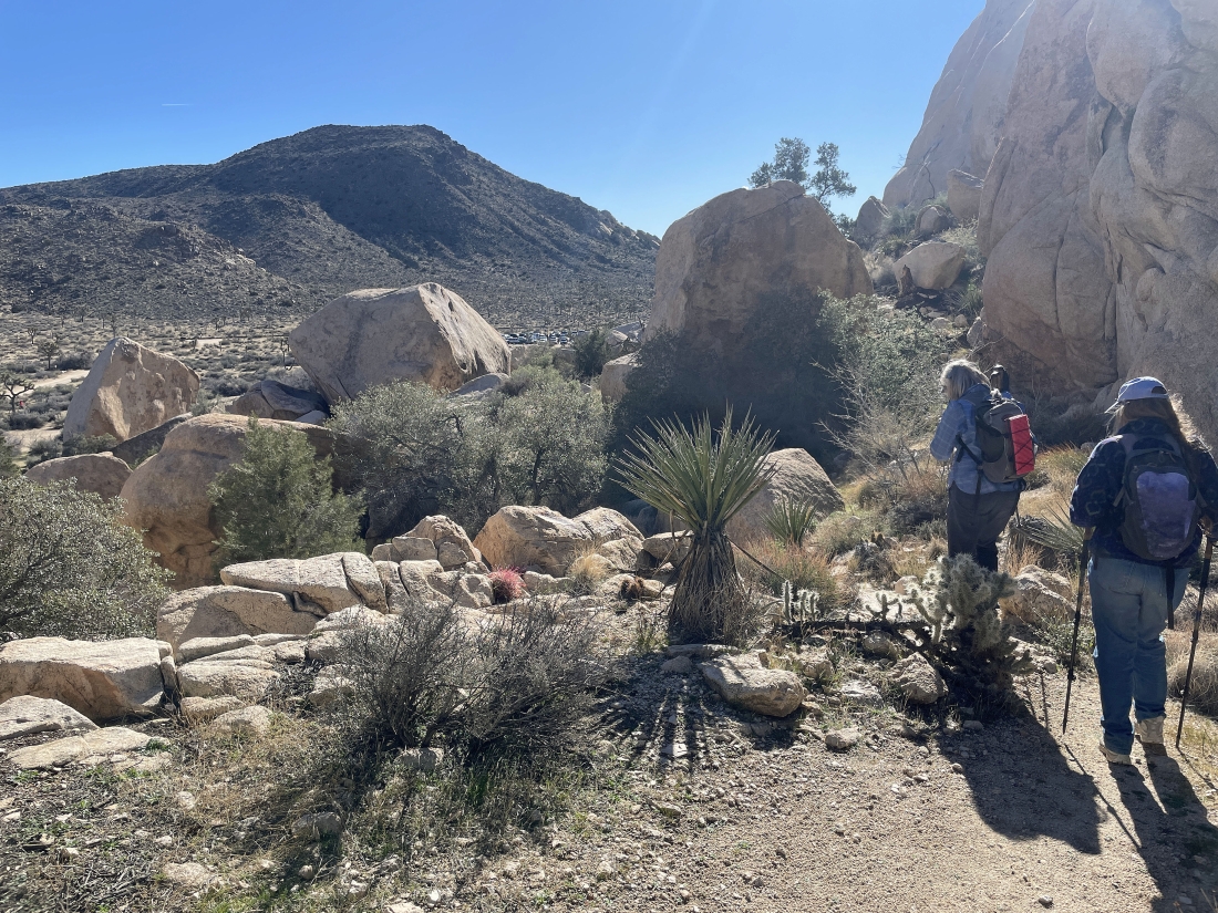 The little side trip has us at the high point of the side trip... with the main trail to Barker Dam below us on the right... and the side door will take us out below on the left... Ryan Mountain is on the horizon in the middle of the photo.
