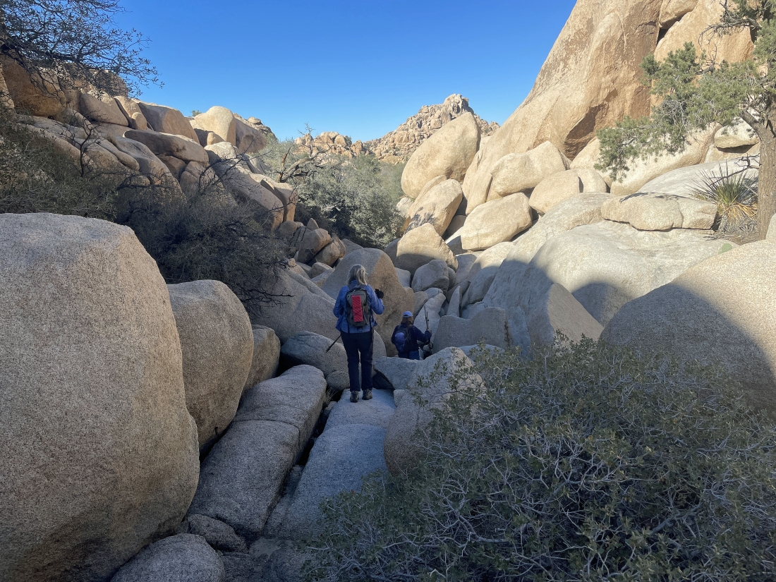 Back down from our side trip and heading for the exit from the Side Door route to Barker Dam.