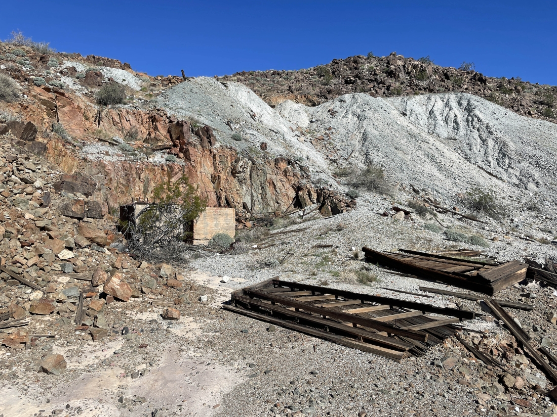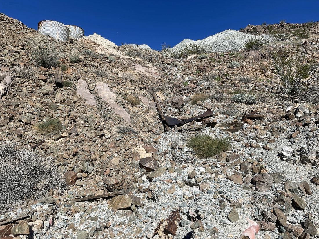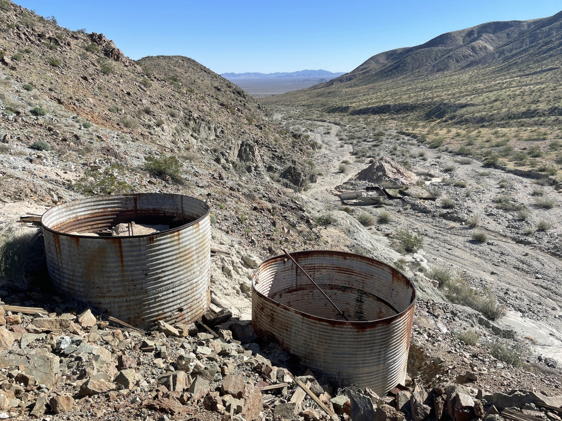 Above the two cyanide tanks... mines use cyanide primarily due to its high efficiency in dissolving gold from ore, allowing for high recovery rates... and I can see the precipitation tanks in the distance down on the desert floor.