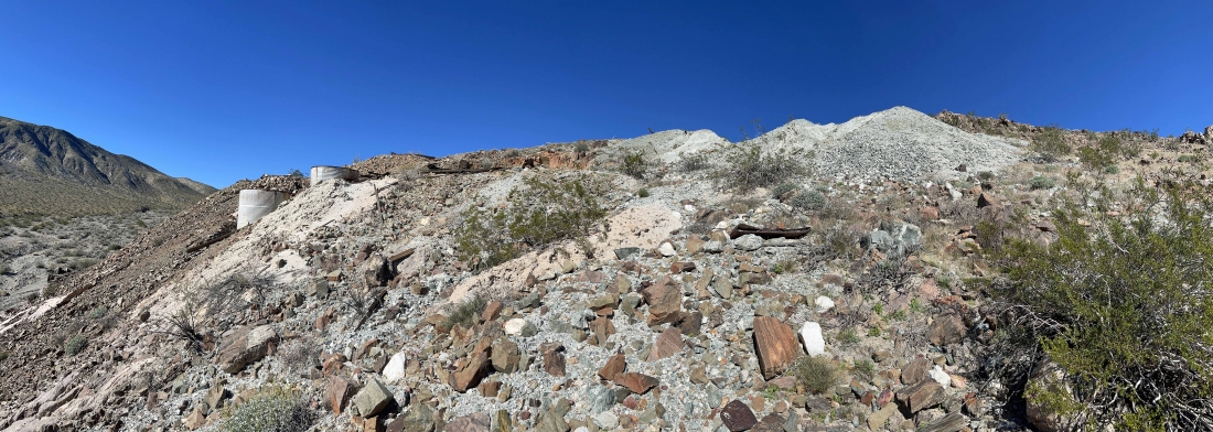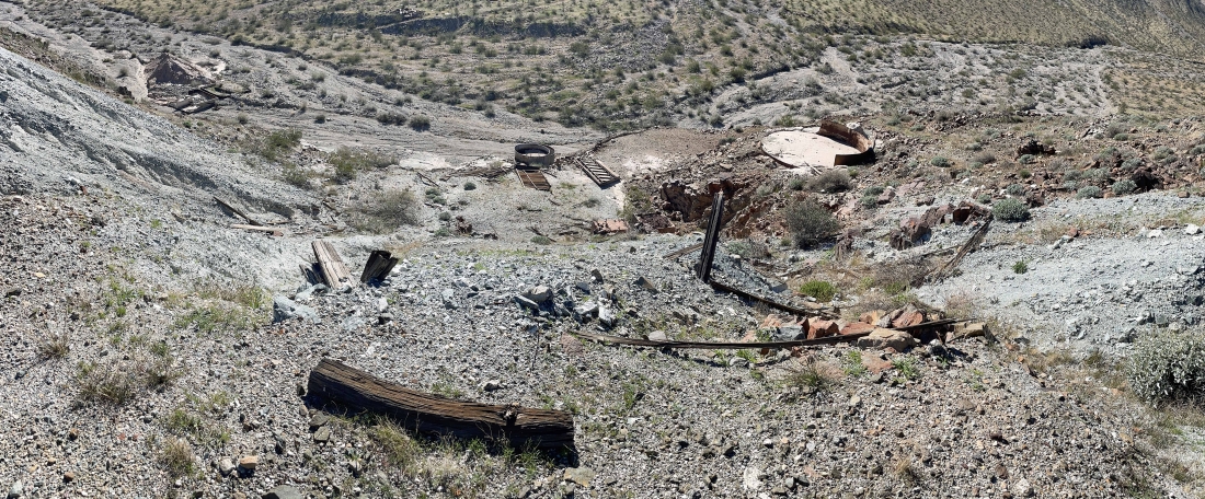 A pano shot looking down at the Eldorado Mine from the ridge above it.