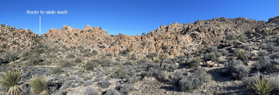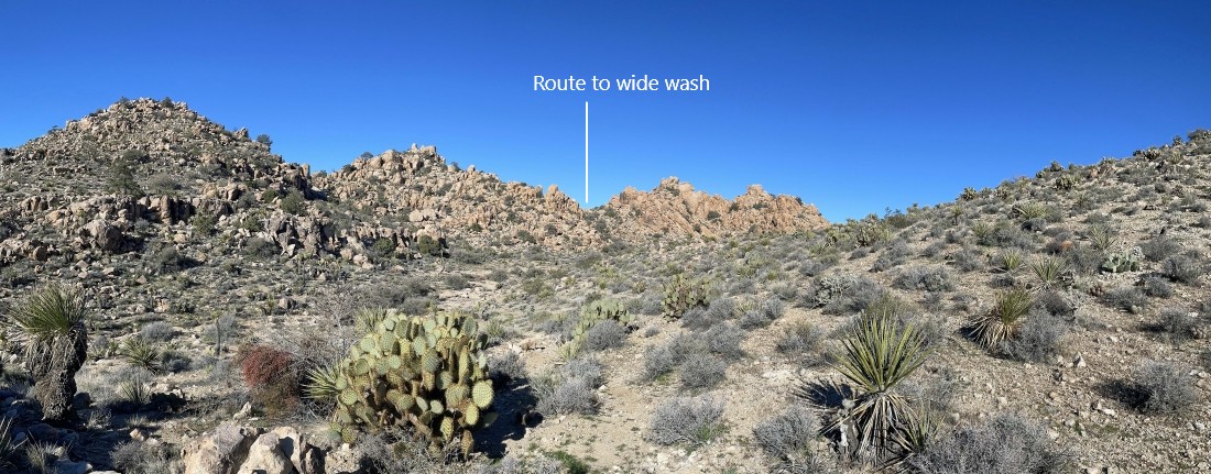 Continuing to hike west... looking for the huge wash on the west shoulder of Queen Mountain.