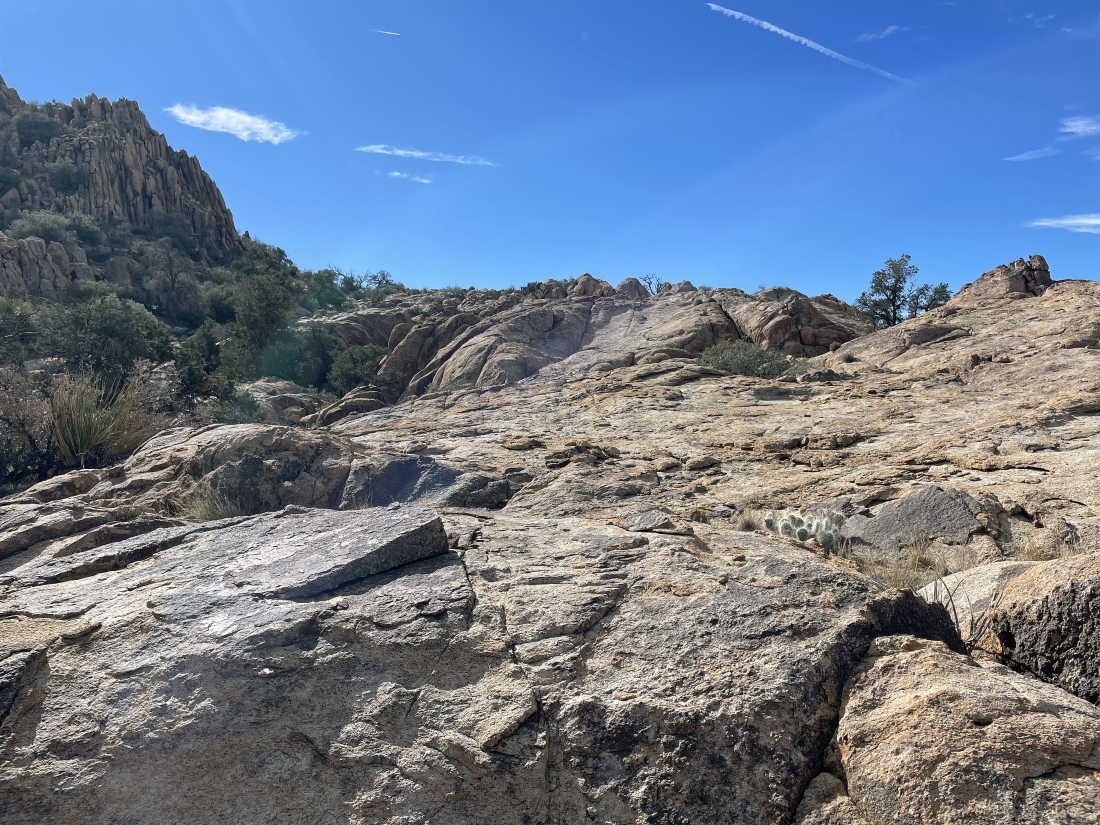Giving up a little elevation from the huge wash as we get ready to close the 3 mile loop portion of our hike.