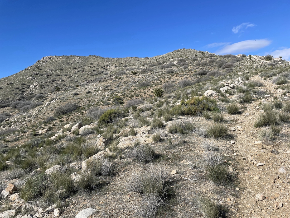 After hiking a total of 4.9 miles I have found a trail on the SE ridge of Quail Mountain... and I will follow the trail for another half-mile to reach the summit.