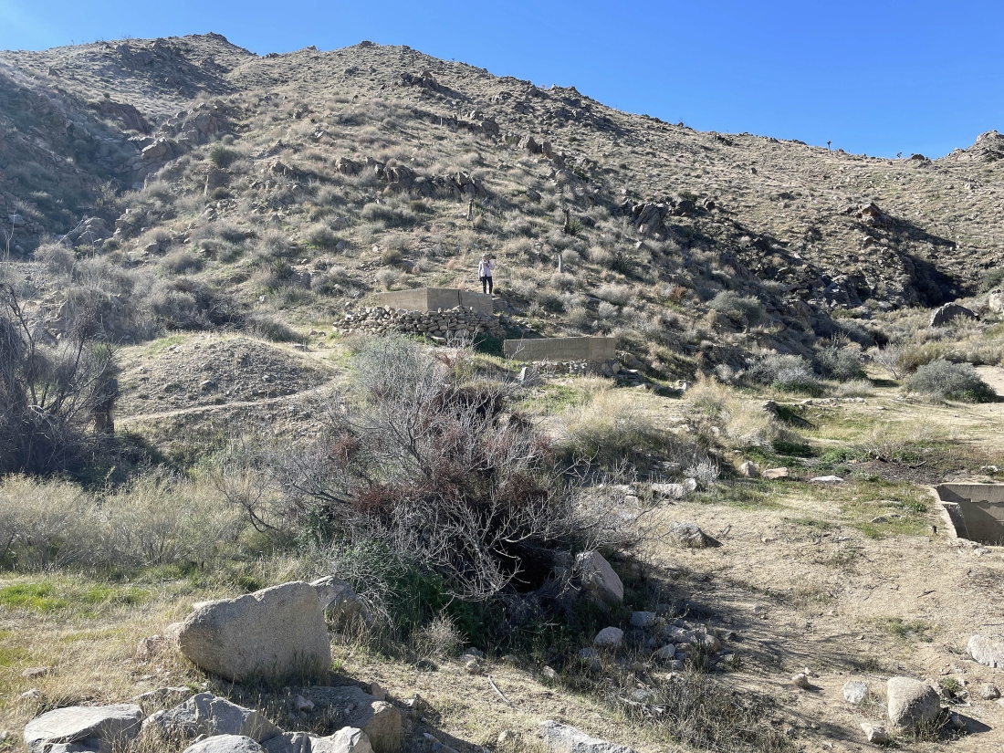 After hiking three-quarters of a mile we have arrived at Pinyon Well. Not sure what this is, but it is located a stone's throw from three water tanks.