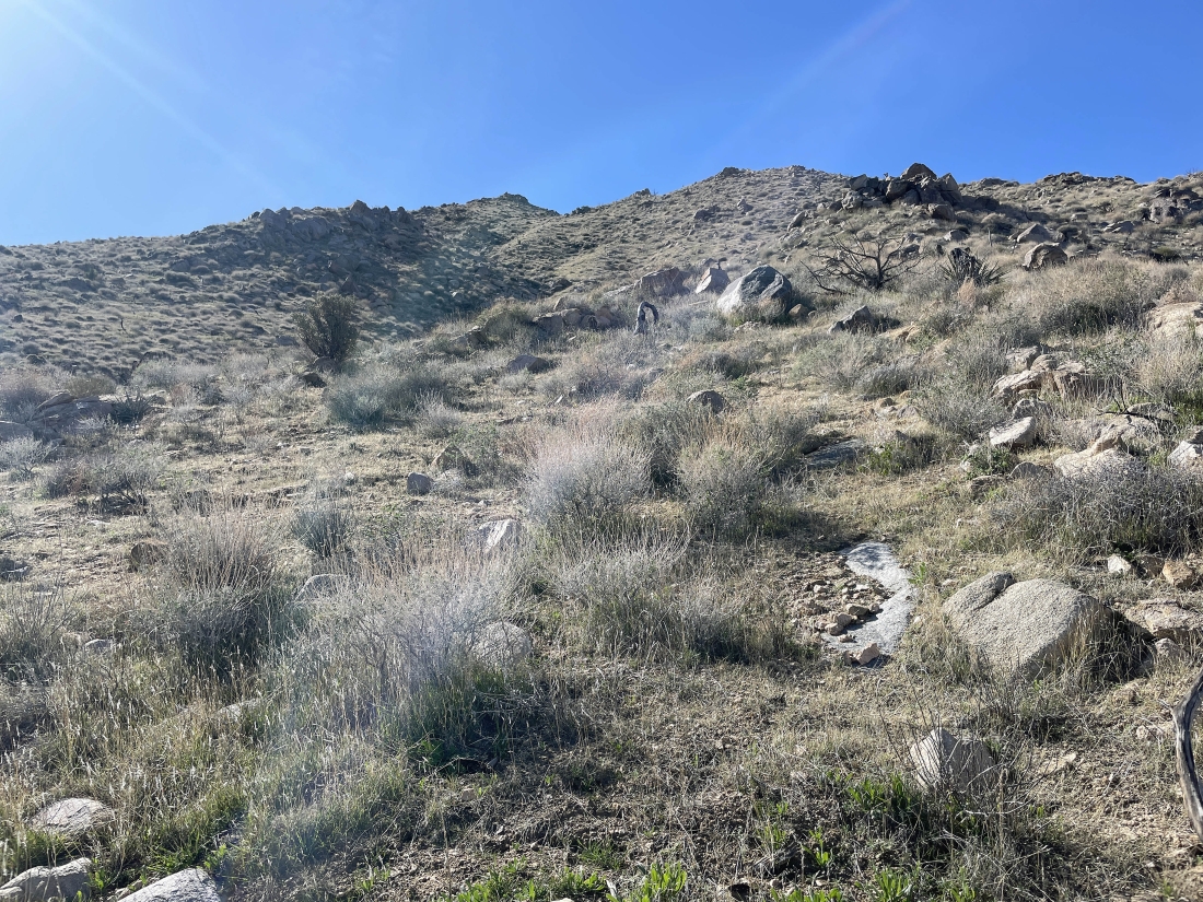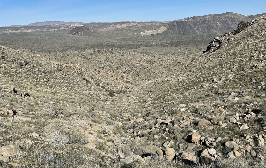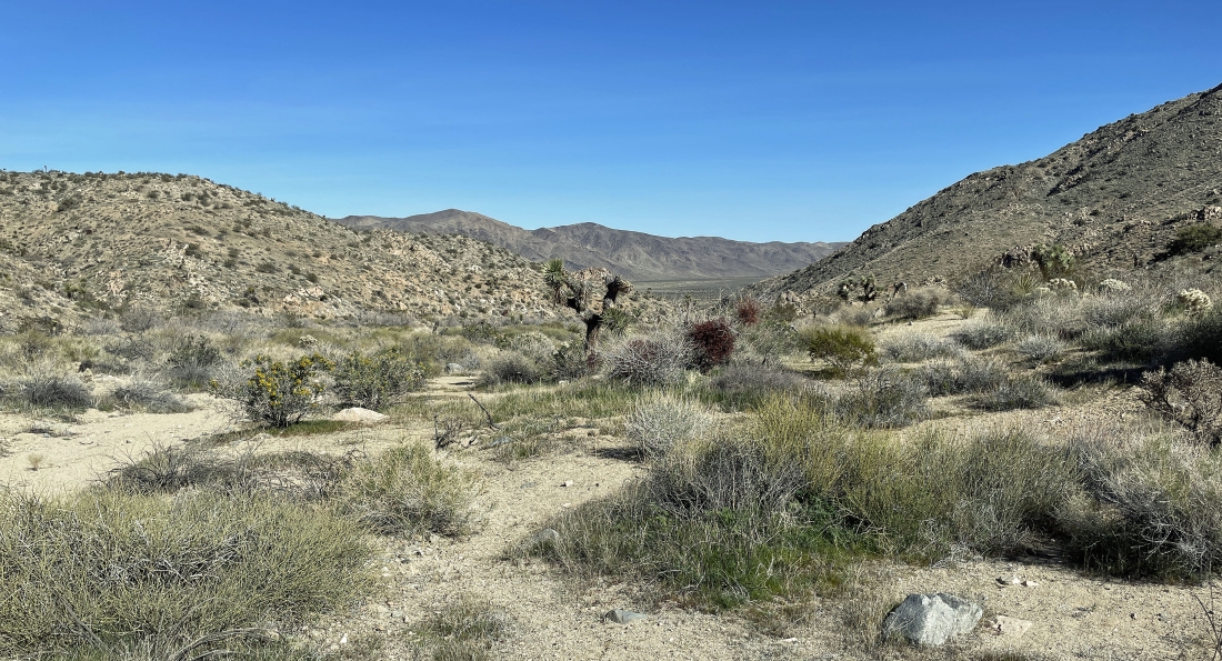 Tracing the three-quarters of a mile back down Pushawalla Canyon.