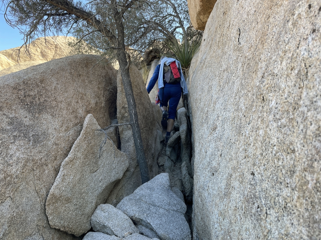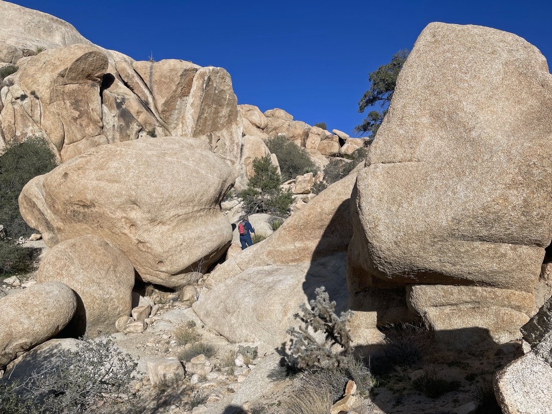 We have gone through the little pass and still have a little bit of scrambling to do to get down to the main wash in the Wonderland of Rocks.