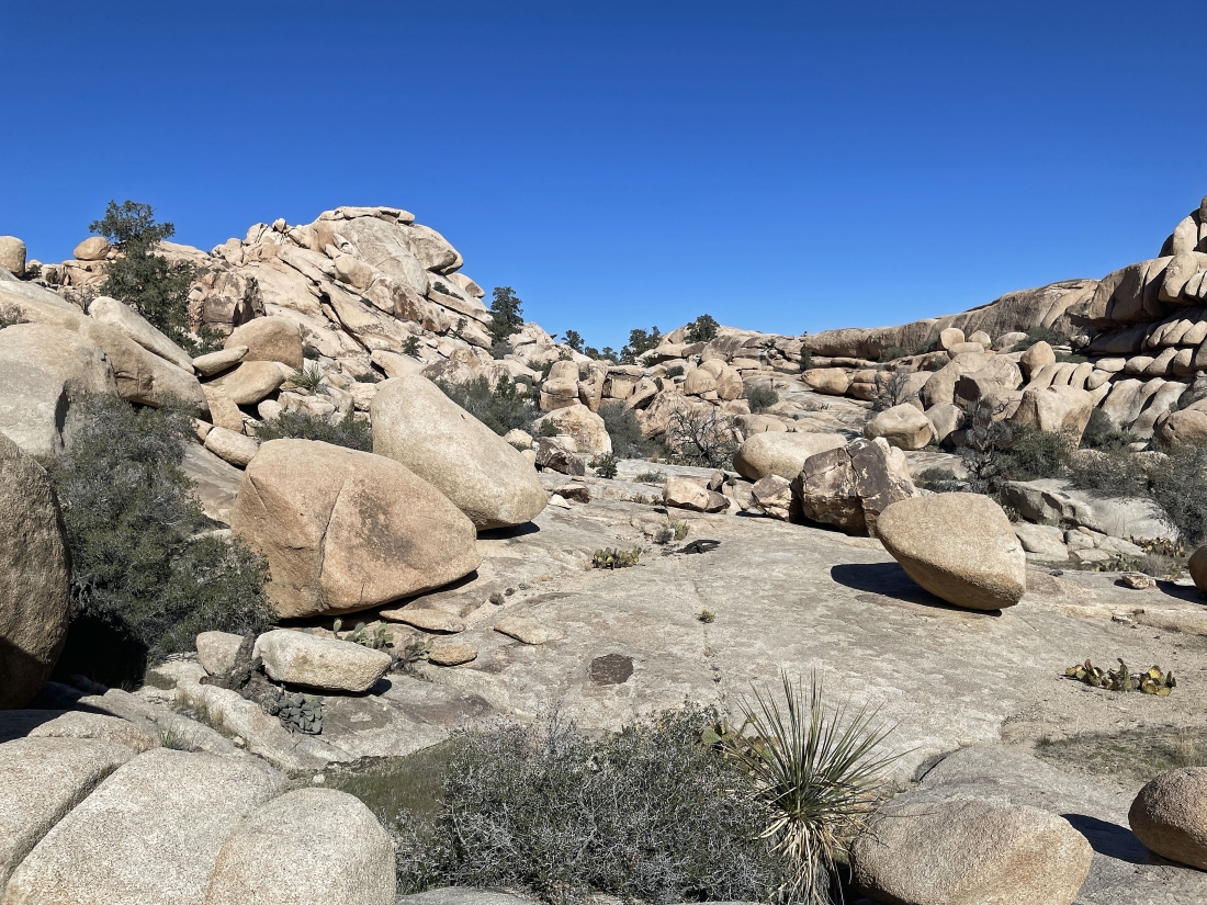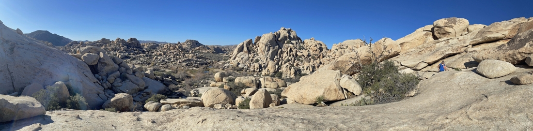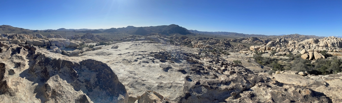 Almost down to the main wash of the Wonderland of Rocks... looking back at the South Astro Dome on the far left... with 'The Camel' on the far right horizon.