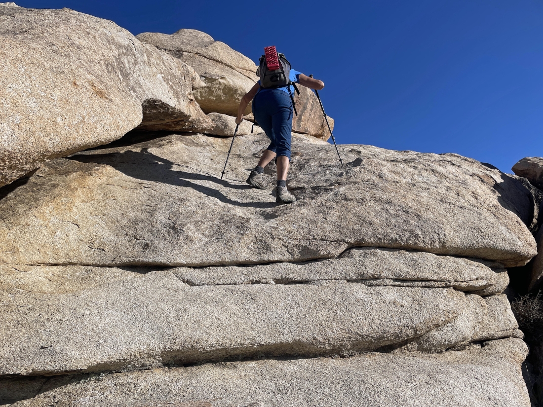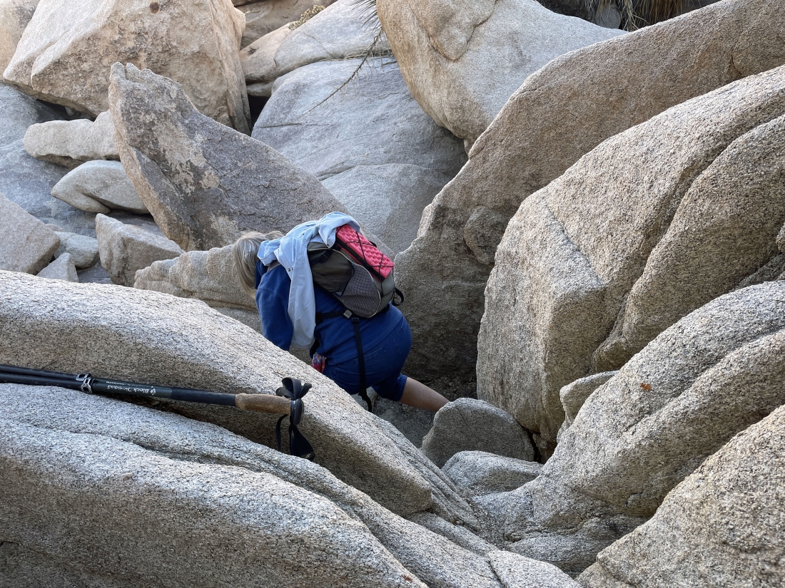 Scrambling down 15 feet of steep elevation... this is what Star Dancer and Denali Girl call 'rock yoga'.