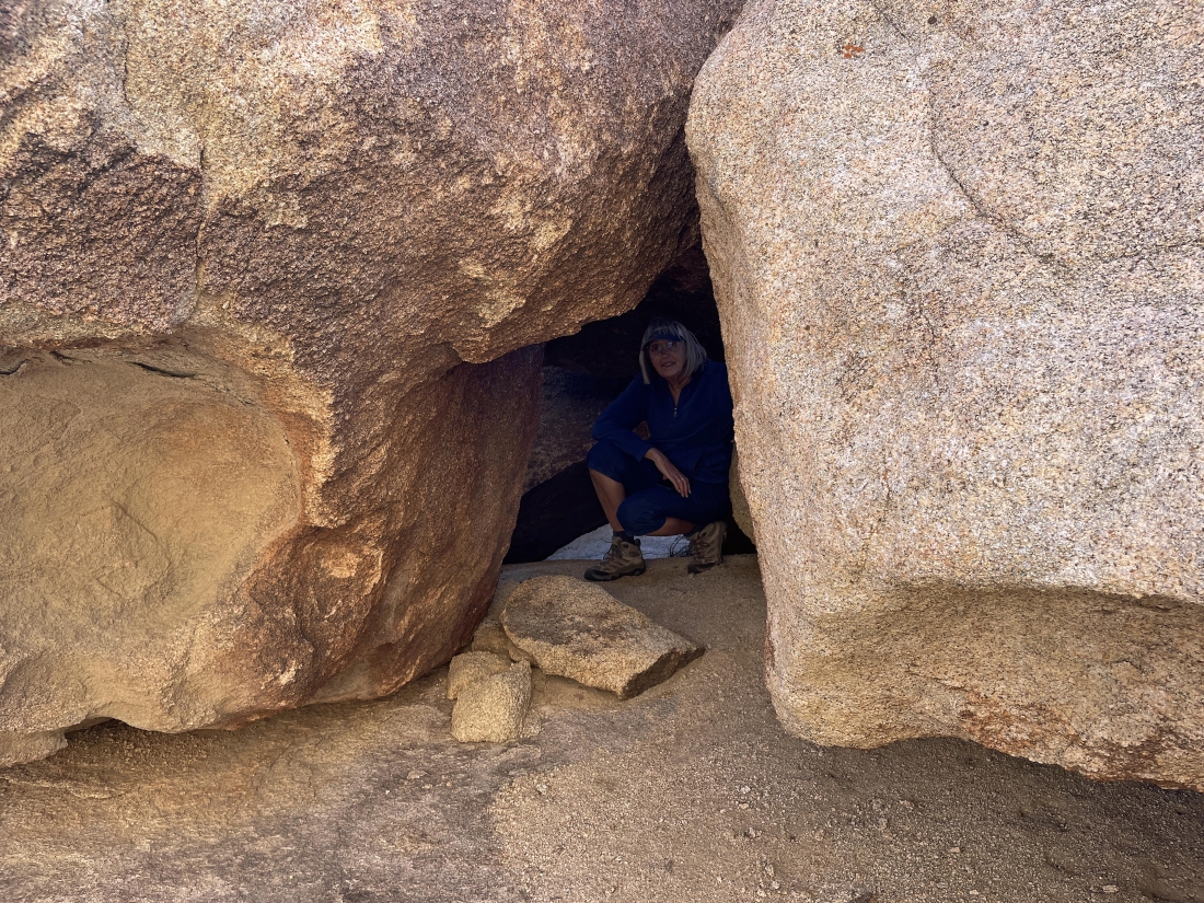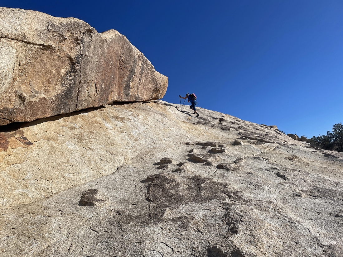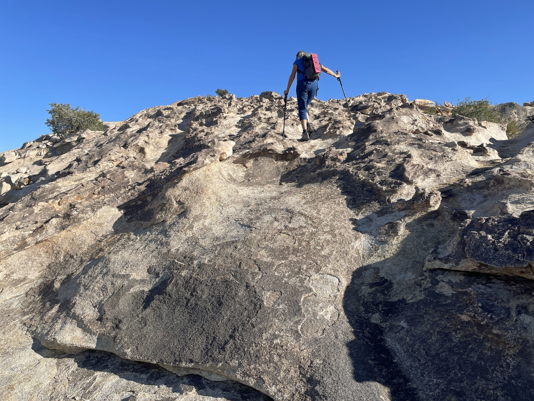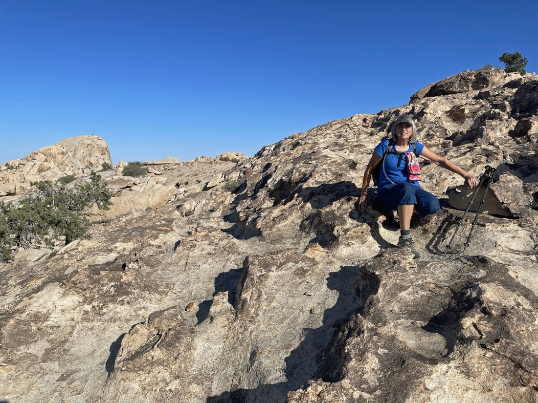 Relaxing in the erosion area of Valhalla Dome... with the South Astro Dome on the far-left horizon... and there is a Pinyon Pine tree up there on the summit of Valhalla Dome.