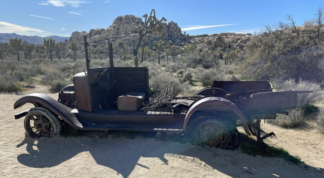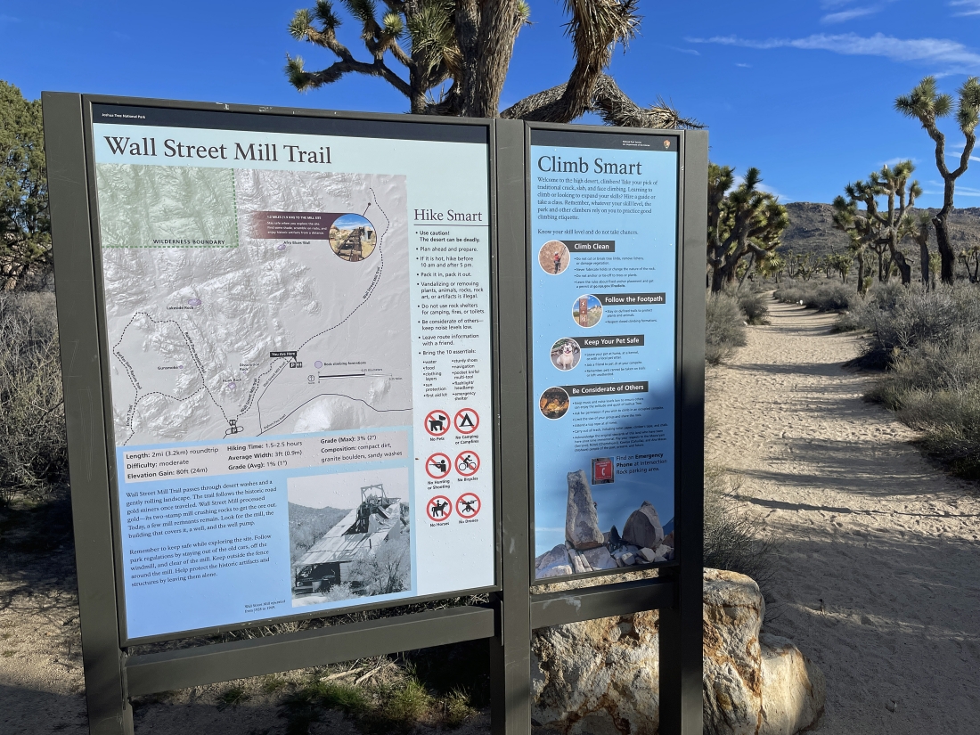 We parked in the dirt parking lot located a quarter-mile NE of the popular paved parking lot for Barker Dam... and started hiking NE on the Wall Street Mill Trail.