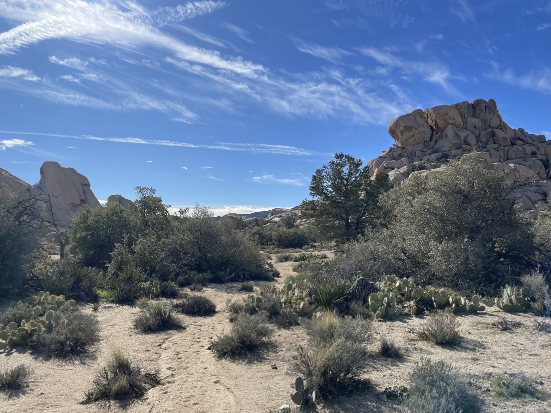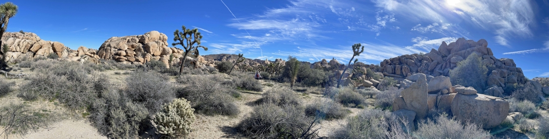 Continuing to hike north in the Wonderland of Rocks... looking to the west at the South Astro Dome and the North Astro Dome.