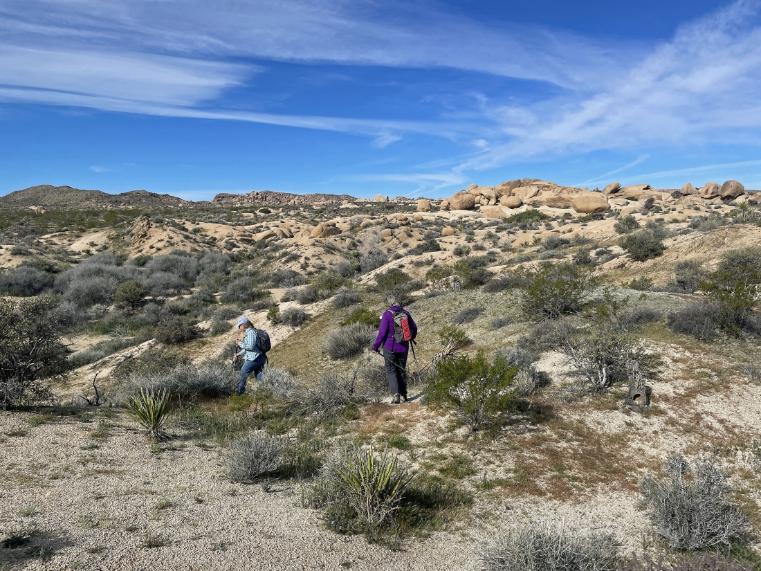 Leaving the first twin tank and heading south for the large quartz rock in the distance.