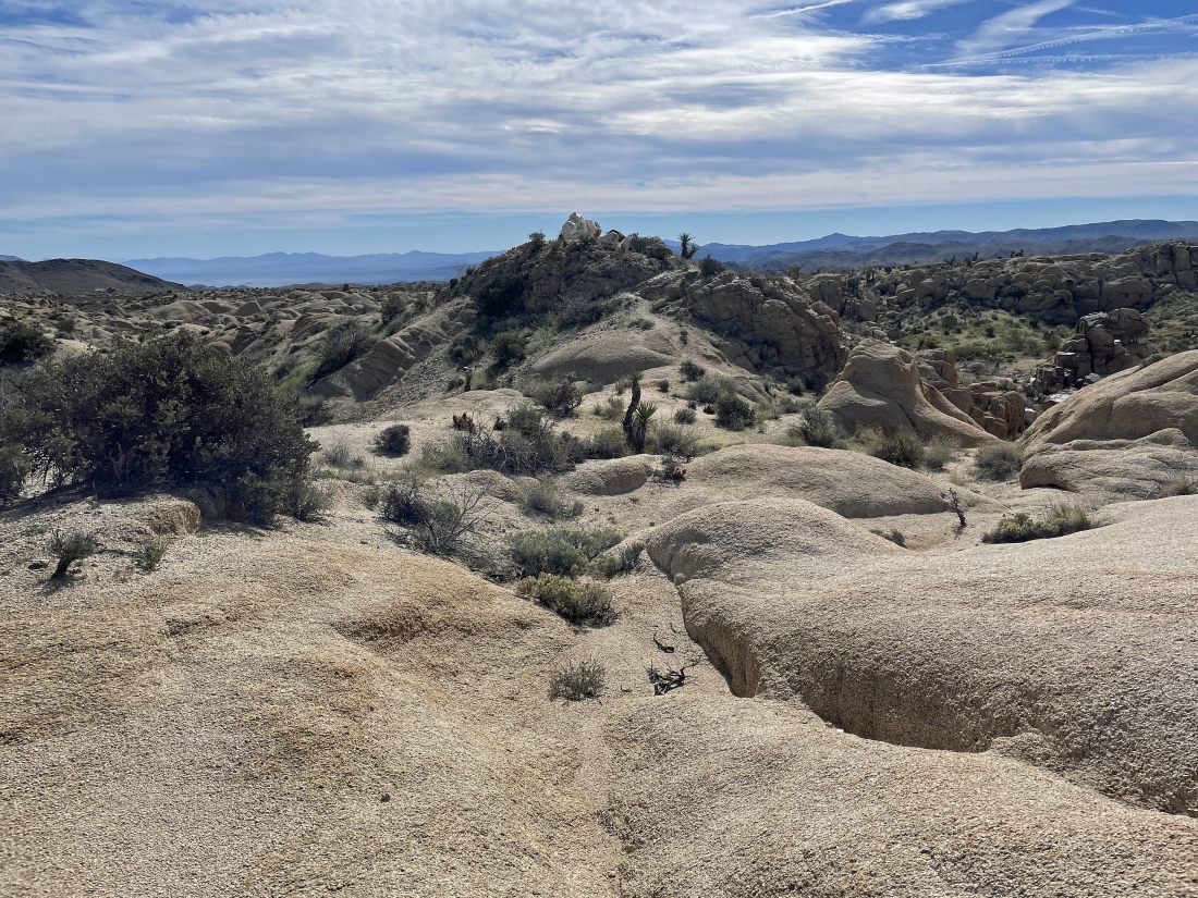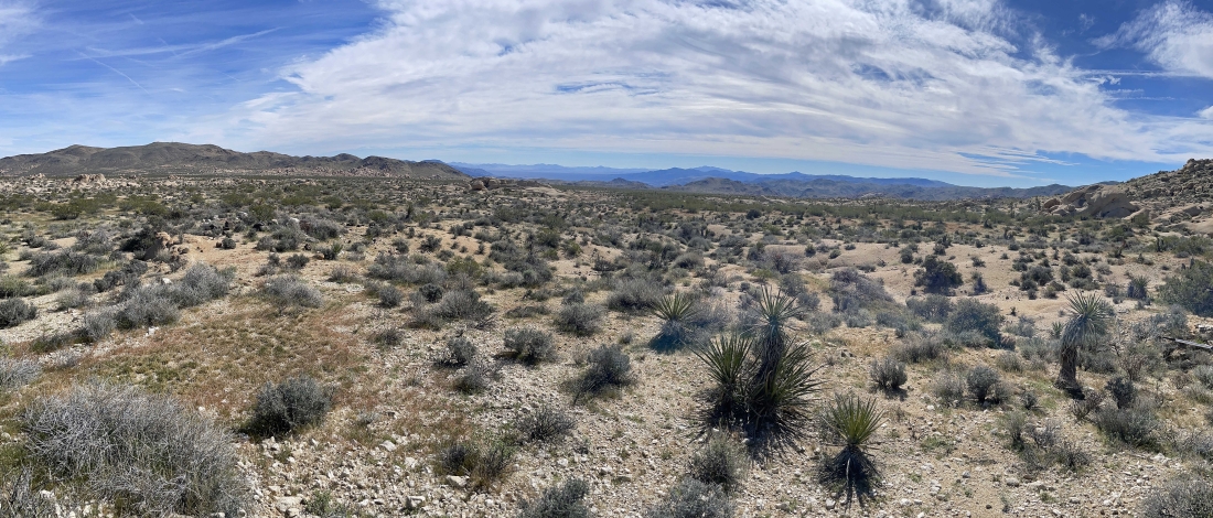 Continuing to hike west... here looking SE to the Eagle Mountains on the far left horizon.