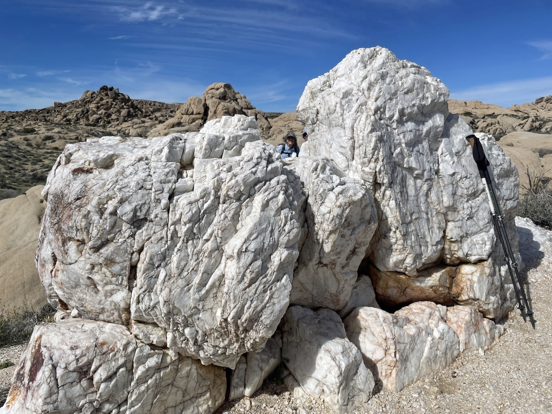 Hiking west again as we leave the second twin tank... here looking back at the quartz rocks.