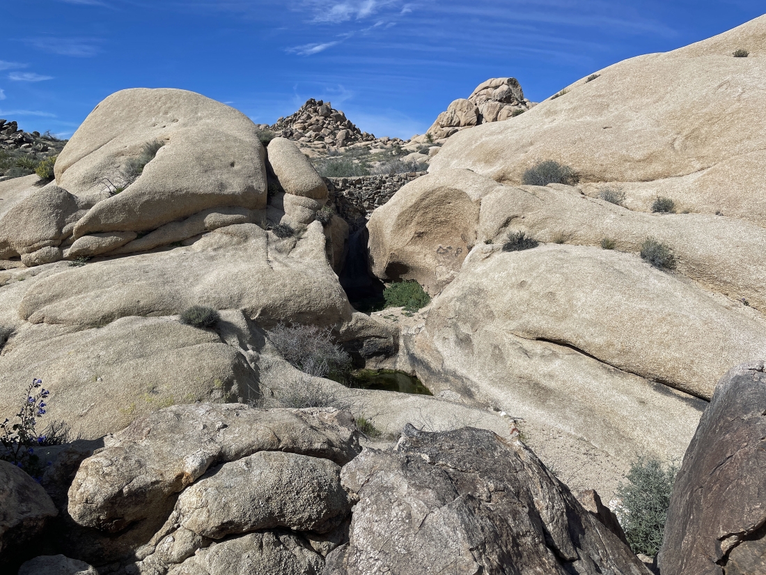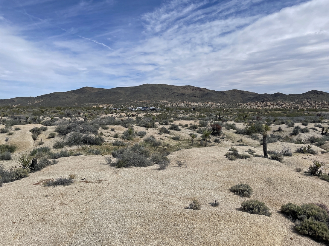 From the first twin tank we are looking east back toward the parking lot... with part of the Pinto Mountains on the horizon.