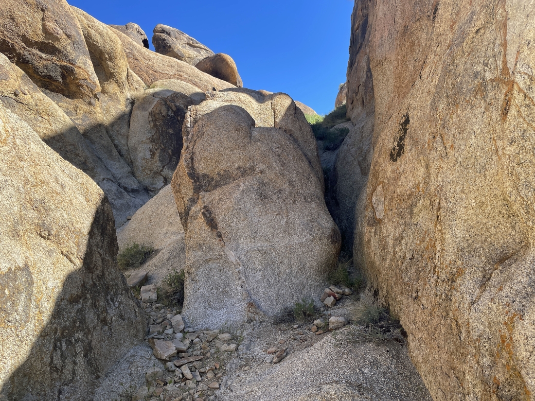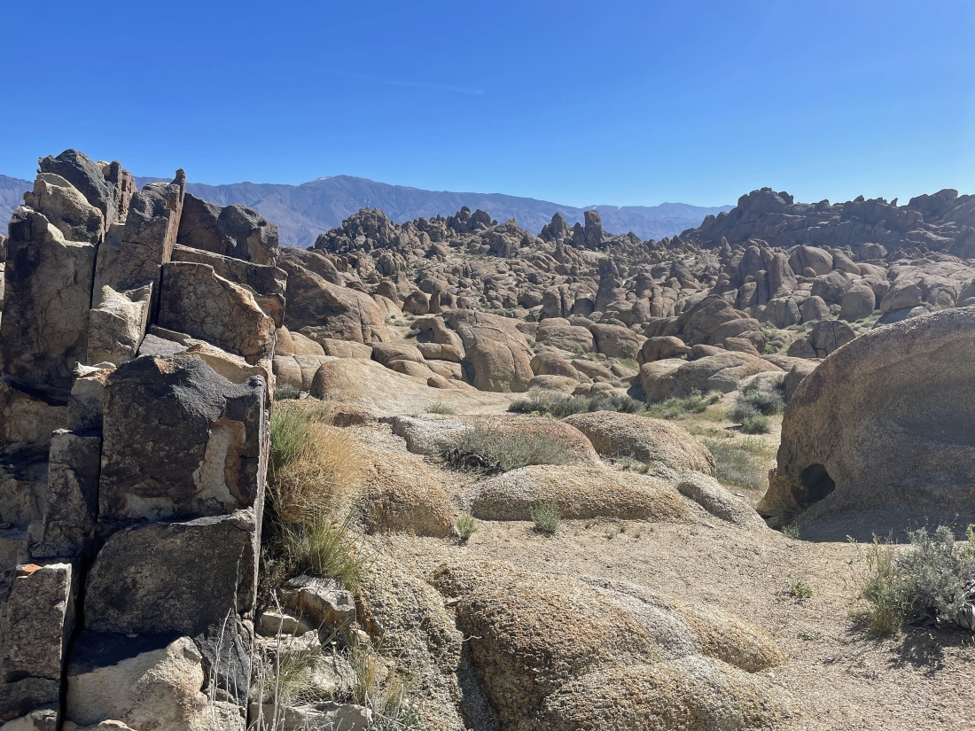 Looking back to the west. That massive pile of brown rocks and boulders is still blocking our view of Mt. Whitney.